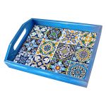 Tabuleiro de Madeira Azul Retangular com Azulejo 15×20